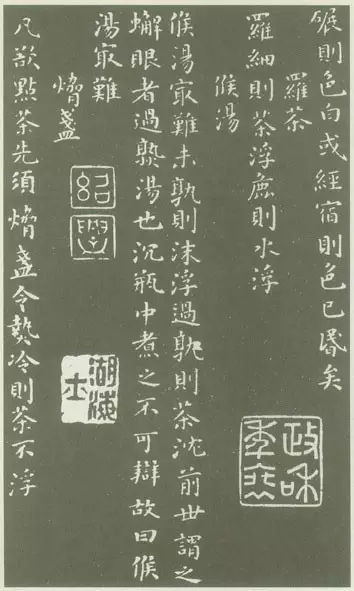 《煎茶水記》這是一本現(xiàn)存最早的專門論水評泉的著作,在陸羽《茶經(jīng)》的五之煮上進行延展發(fā)揮,將適于烹茶的水進行更為全面地剖析,整部書僅約900字,列出當(dāng)時唐代宜茶用水20處之多。