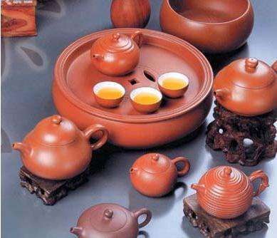 從工夫茶飲茶器具來(lái)看,先時(shí)潮人泡茶均崇尚蘇罐,即江蘇宜興產(chǎn)之紫砂壺。至今,老一輩茶人仍有“孟臣罐”(惠孟臣,江蘇宜興人,制壺名家,一說(shuō)為天啟崇禎年間人,一說(shuō)為清康熙雍正年間人)、“若琛杯”(若琛為江西景德鎮(zhèn)制杯名家)之口傳。據(jù)考,宜興紫砂壺的制作始于明代,至明中晚期形成較完整的工藝體系,從明萬(wàn)歷到明末是紫砂壺發(fā)展的高峰,這也與潮州工夫茶的形成期基本吻合。潮州工夫茶一般只用小品壺(容量在120cc左右)沖泡,其它地方飲茶之用壺均用中品壺(容量大于200cc)以上,因此,潮州是宜興小品壺的主銷地,至今仍是這樣。潮州工夫茶的用壺方式,也影響到宜興紫砂藝人的制作技法,至今,仍有一些制壺工藝師到潮汕地區(qū)來(lái)學(xué)習(xí)工夫茶的沖泡方法,并把悟到的要點(diǎn)應(yīng)用于紫砂壺的制作技藝中去,如壺體重心、容量、造型、出水通暢程度、適應(yīng)泥質(zhì)、壺蓋密封度等。