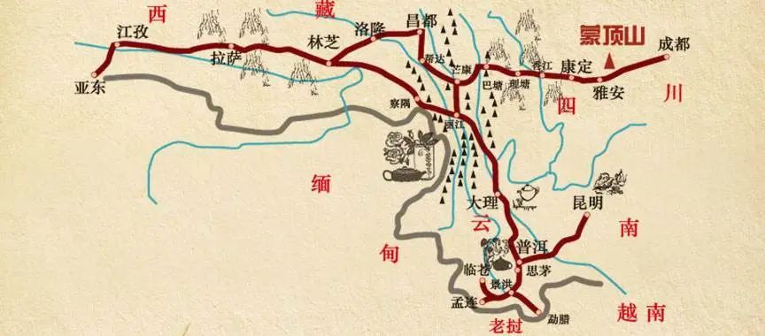 之后,順其自然地就出現(xiàn)了滿足這種貿(mào)易形式的貿(mào)易通道。古代交通方式有限,“馬幫”就成了為交換“馬匹”和“茶葉”貿(mào)易提供服務(wù)的運(yùn)輸商。隨著“茶馬互市”規(guī)模的擴(kuò)大,一條條古道被相繼探索發(fā)展出來(lái),隨著歷史的發(fā)展,人們逐步將這些道路統(tǒng)稱(chēng)為了“茶馬古道”,一個(gè)聽(tīng)起來(lái)還有點(diǎn)浪漫的名字。