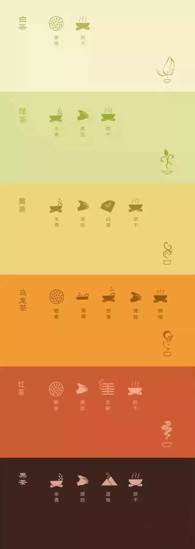 三、六大茶類(lèi)的發(fā)酵程度排序