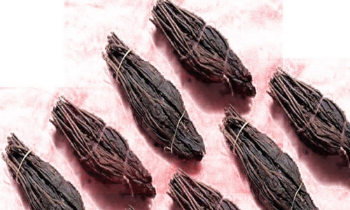 龍須茶具有工藝晶的性質(zhì),它對(duì)外形的要求極高,茶束的外觀形狀,必須滿像蘸墨汁而直立的短毛筆,色呈墨綠,長(zhǎng)約二寸八分,最大處周圓約二寸半,不宜過大或過小,四十至五十個(gè)干茶束約重一斤。茶束分單束和雙束兩種,均扎以鮮艷的紅、綠絲線。
