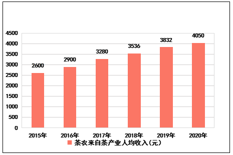 茶葉作為精準(zhǔn)扶貧的重要產(chǎn)業(yè)之一,在云南脫貧攻堅戰(zhàn)中發(fā)揮了重要作用,全省茶產(chǎn)業(yè)涉及茶農(nóng)600多萬人,“十三五”期間,茶農(nóng)來自茶產(chǎn)業(yè)人均收入年均增長率達9.2%,2020年,人均茶產(chǎn)業(yè)收入達4050元,人均比上年增收218元,增5.7%。比2015年增加1450元,增幅達56%,茶產(chǎn)業(yè)為精準(zhǔn)脫貧做出了積極貢獻。