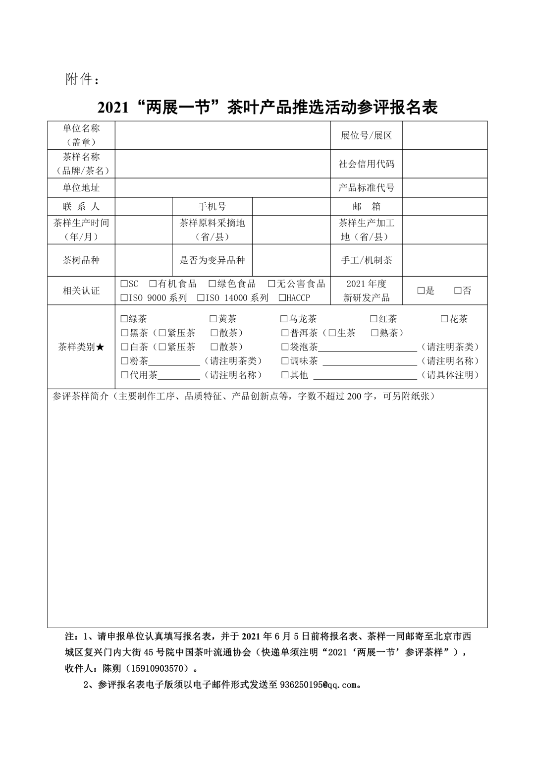 本文標題:中國茶葉流通協(xié)會關(guān)于邀請參加2021“兩展一節(jié)”茶葉產(chǎn)品推選活動的通知 - 茶葉新聞_中國茶葉新聞_國際茶葉新聞