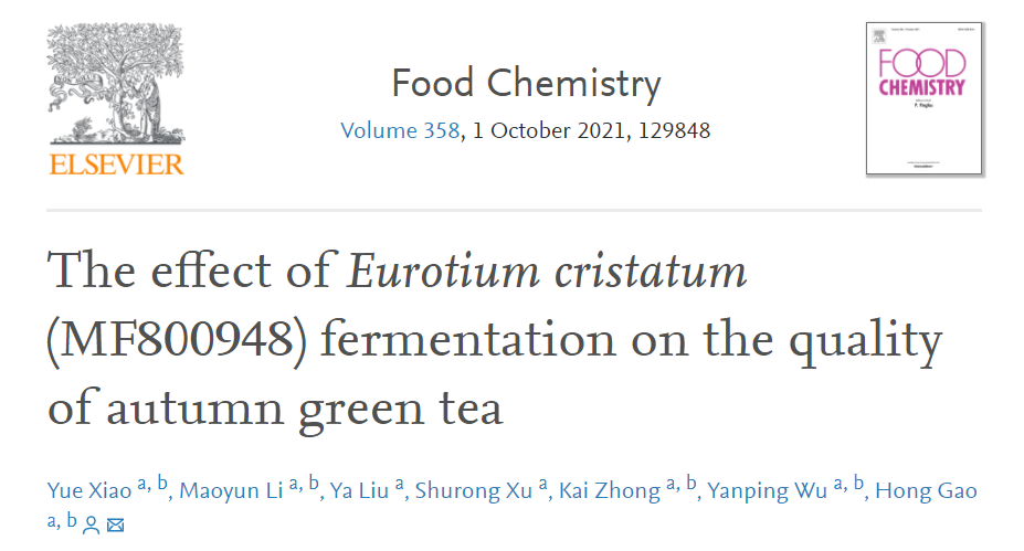 近日,我院高鴻教授團(tuán)隊(duì)以秋茶為原料,利用專利菌株“冠突散囊菌PW-1”進(jìn)行秋茶發(fā)酵,探究冠突散囊菌PW-1菌株對黑茶品質(zhì)的提升作用及機(jī)制,相關(guān)研究成果以我院為第一單位發(fā)表在食品科技領(lǐng)域頂級期刊《Food Chemistry》上,題為“The effect of Eurotium cristatum (MF800948) fermentation on the quality of autumn green tea”。我院博士研究生肖月為第一作者,高鴻教授為通訊作者,該項(xiàng)目獲得了四川省科技計(jì)劃項(xiàng)目基金(No. 20ZDYF3186)的支持。