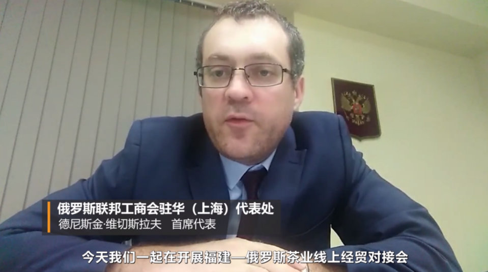 俄羅斯聯(lián)邦工商會駐華(上海)首席代表德尼斯金·維切斯拉夫表示,很高興通過在線對接會和網(wǎng)絡(luò)交流會形式,與福建省貿(mào)促會合作一起推廣福建茶產(chǎn)業(yè)。此次線上活動是恢復(fù)國際貿(mào)易業(yè)務(wù)的象征之一,一起見證了不同國家的商人企業(yè)家們是如何找到一條發(fā)展國際關(guān)系的新路,祝愿俄羅斯和福建在經(jīng)貿(mào)合作上更進一步。